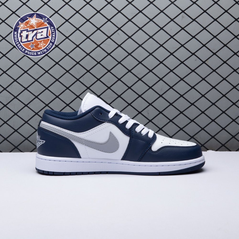 Jordan 1 Low Wolf Grey Midnight Navy 553558-141 Unisex